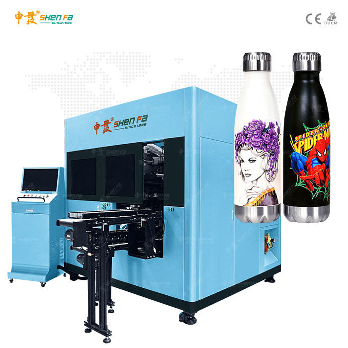 Société de SHENFA avec la dernière machine numérique automatique du jet d'encre 3D, principal utilisation dans la bouilloire de sports de vide, tasses en verre, tasses en métal, bouteille en verre, bouteille de vin, emballage cosmétique etc.